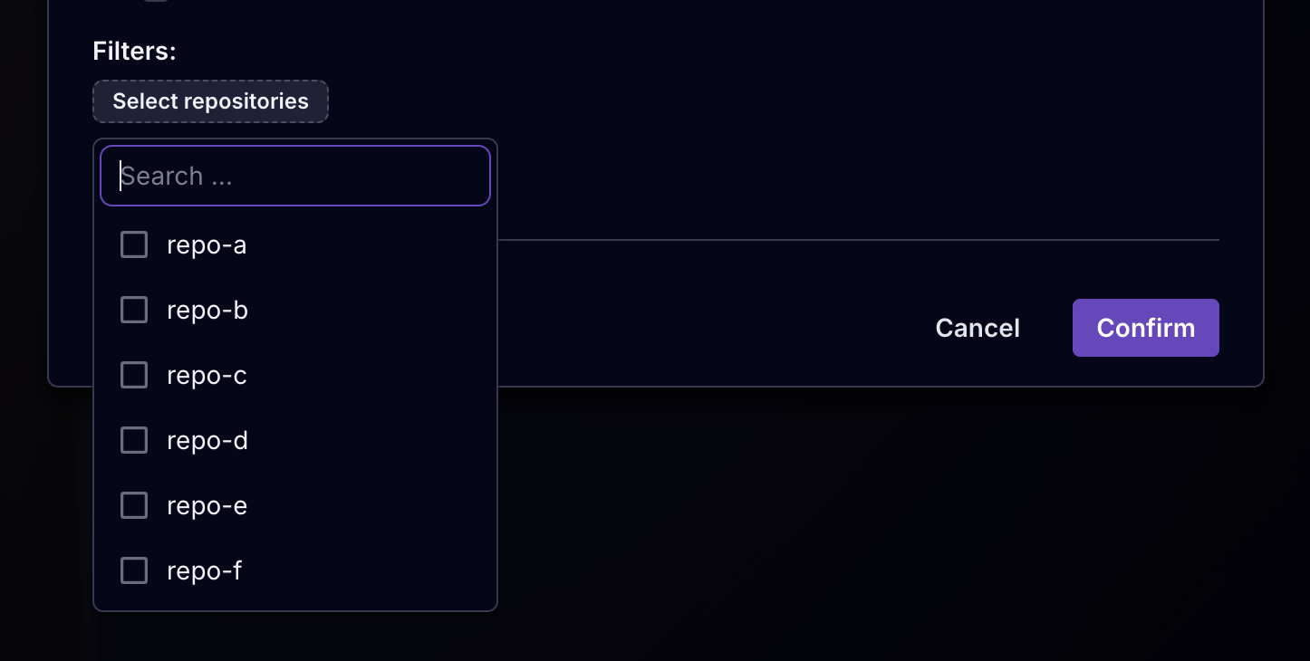 You can select a single or multiple repositories. By setting up multiple webhooks, you can notify different receivers depending on repository.